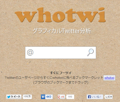 これはすごい!! 気になる人のTwitter利用を分析してくれる 『whotwi』 おもしろサイト 2013年05月20日 調べたいTwitterアカウントを入力するだけでツイート傾向など色々と調べる事が出来るネットサービス片思い・両思い・モテ度なども独自の解析で判断してくれます。ここに 自分のツイッターID 気になる人のツイッターID を入力すれば分析できます『whotwi』リンク先へiframe frameborder="0" allowtransparency="true" height="60" width="468" marginheight="0" scrolling="no" src="http://ad.jp.ap.valuecommerce.com/servlet/htmlbanner?sid=3061459&pid=881933477" marginwidth="0"> [2回]